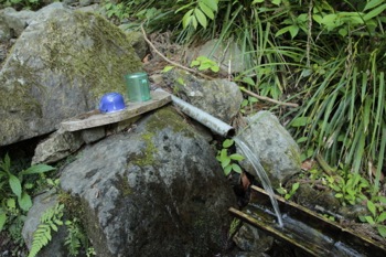橋の手前に水場があったので、手ですくって喉を潤す。