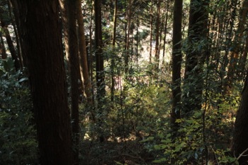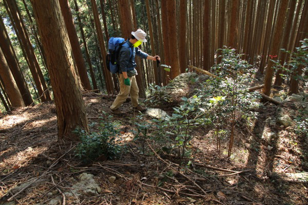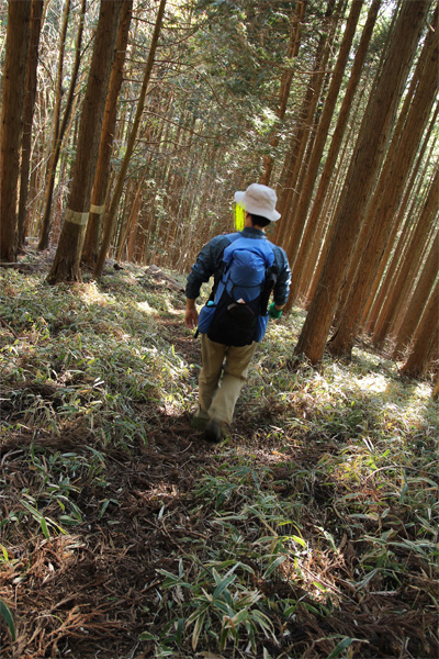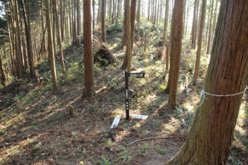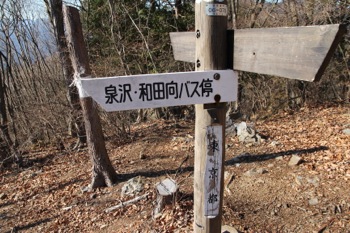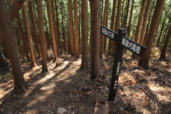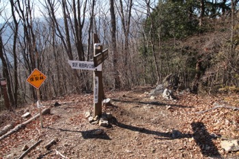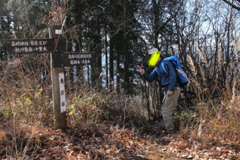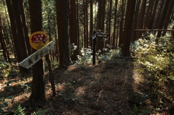 このまま、ずーっと尾根通しに歩いて行くのかと思っていたら、 途中道標が出てきて、道が尾根から外して行く。