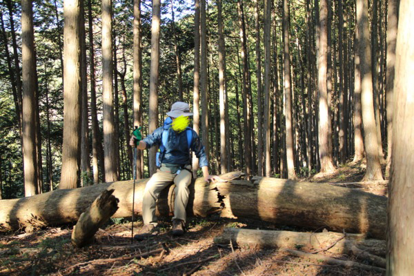途中は大きい切り株があって、そこに腰掛けて休める。
