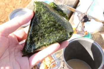 オニギリを取り出しまして。