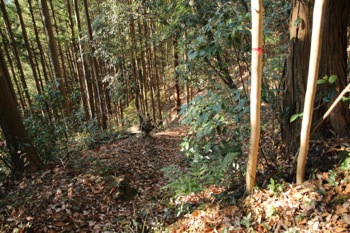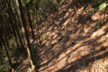 落ち葉の堆積具合が半端なくて、つるつる滑るが慎重に下る。