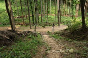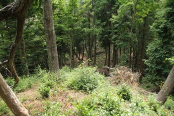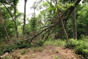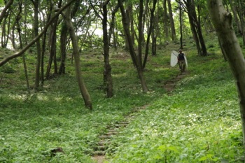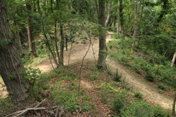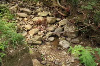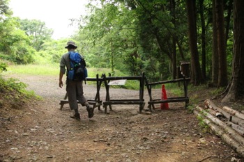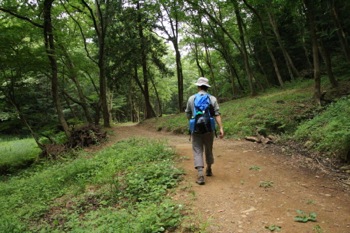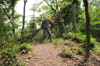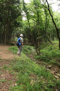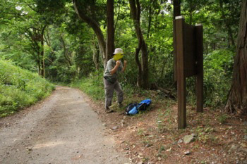 下っていたら、大きい網を持っているおじさんがいたので、 何してるんですか?って話ししたら、 行政に依頼されて、生態調査してる方でした。 その人が言うには、この辺りの地形もなかなかおもしろいというか、 例えばこの下の斜面なんかは、東京ではめずらしいカール状の地形で・・とか、 いろいろ教えてくれた。