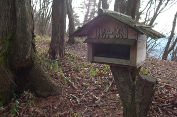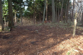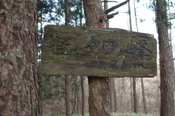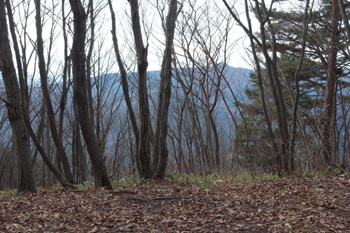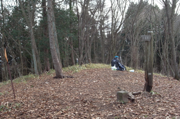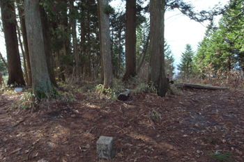 山頂は杉の木で覆われていて、展望らしきものは無い。背の低い笹が山頂一面に生えているだけだった。