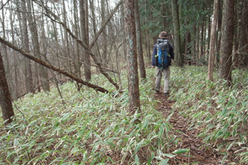 笹ヶタワノ峰の山頂からさらに緩やかに高度を落として行く、その道がまさに笹の原であった。