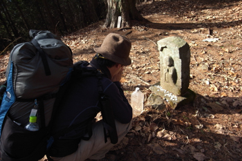 日原峠には真ん中にお地蔵さんが立っていました。