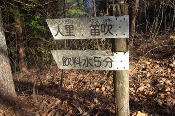 日原峠にある、『飲料水5分』の看板。