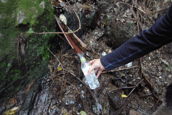 空いたペットボトルに水を詰めなおす。