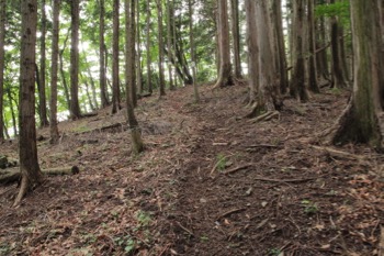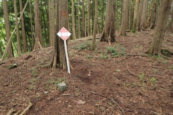 山頂付近は、南北に細長い、やや広めの場所でした。北側に歩きながら、山頂プレートのようなモノを探しましたが、特に何もありません。