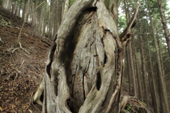 周辺を見ると、林業の人が仕事をした跡がみられます。