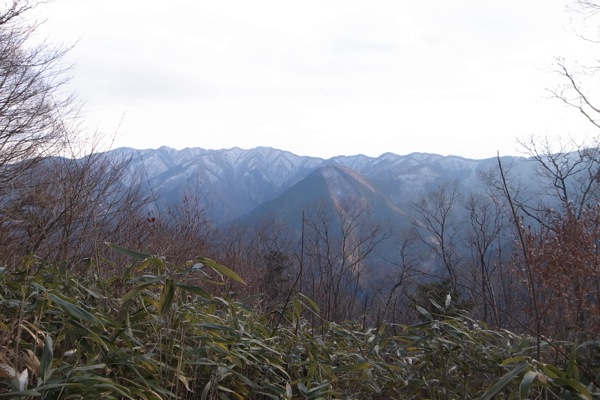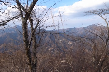 左の突起は奥多摩三山の御前山、右の突起も奥多摩三山の大岳山。