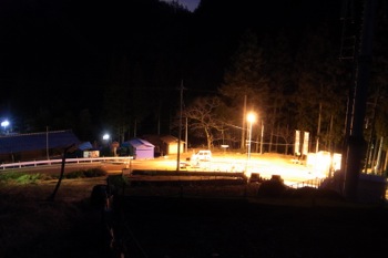 暗い森の中に入ると、まるで夜のようでヘッドライトを取りだしました。