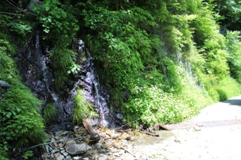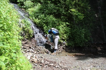 途中の水場で疲れを癒す。