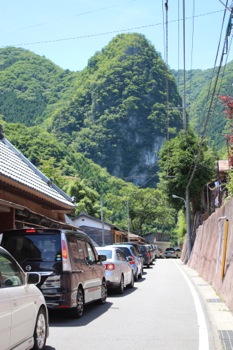 日原鍾乳洞へ向かう車の行列なんです。