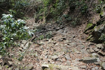 途中は道がザレていて、かつ道が細く、そして急斜面な場所が数箇所ある。