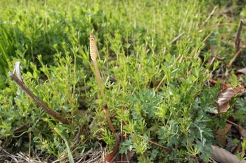 ツクシ(土筆)は山菜として食べる事ができるんですが、ちょっと軽く指で弾いてみたら胞子を飛ばしていたので、採取を断念。 胞子を飛ばす前の、固い状態のものが食べごろらしいです。ツクシになる前のスギナも茹でて佃煮にして食べる事ができるらしい。