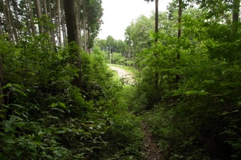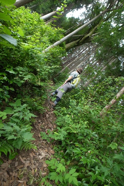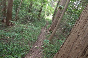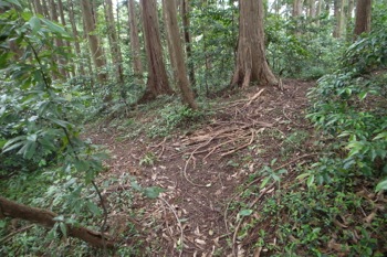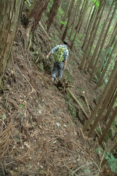 見えたけど林道へは出ずに、なおも登山道を直進します。