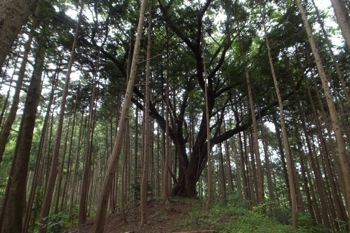 標高457mの小さいピークを詰めて行くと、大きく枝を張り出した巨木が見えてきます。