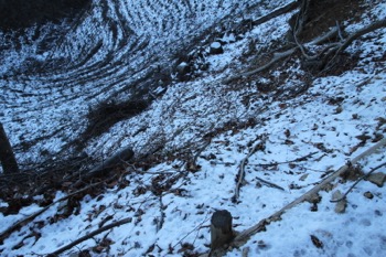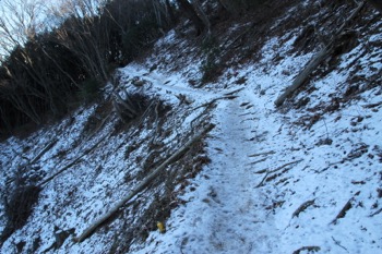 タル窪の頭の北側の巻き道。ここがアイスバーン状態で危険すぎた。