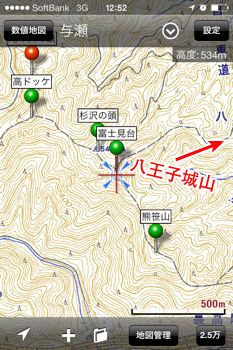 ここから、八王子城山まで周遊して下山するコースを選びます。
