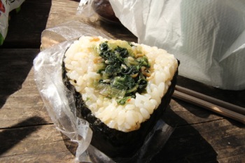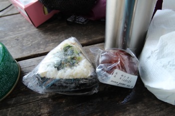 そして高尾駅で買ったおにぎりと、燻製たまご。
