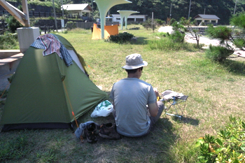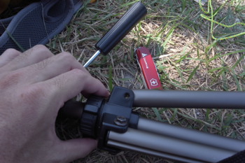 キャンプ場に到着して、真っ先にやったのが三脚修理です。