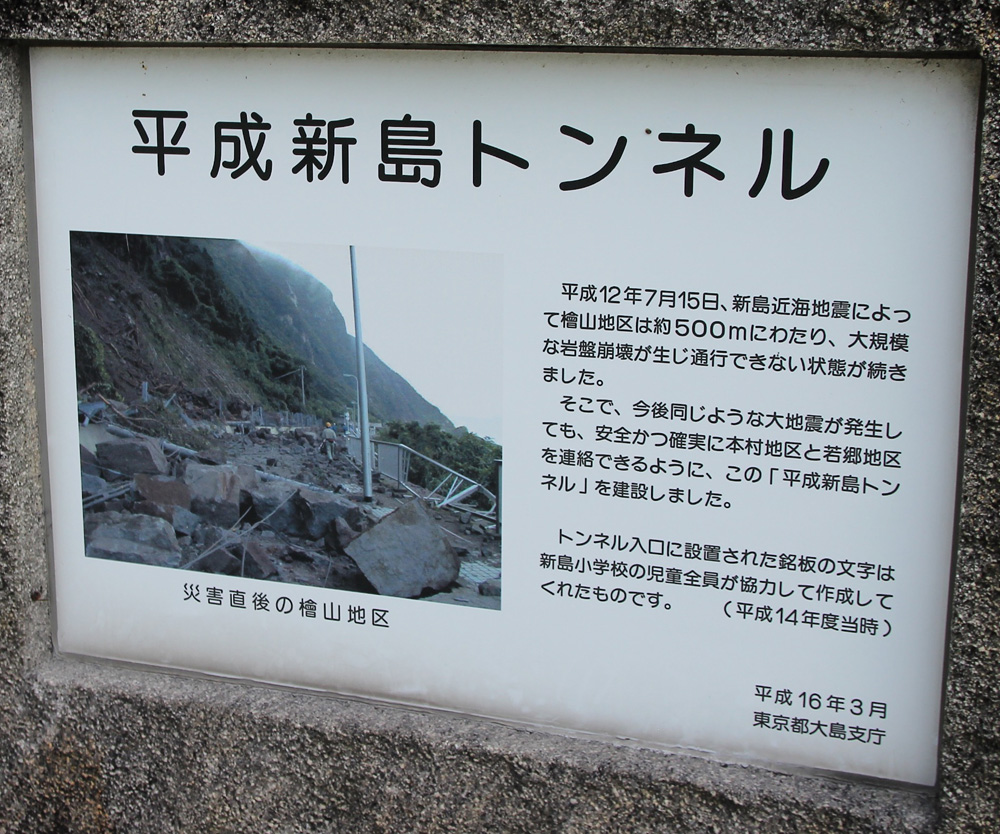 新島は北にある若郷地区と、南の本村地区に分かれているのですが、この2つの地区をつないでいるが、この『平成新島』トンネルなんです。