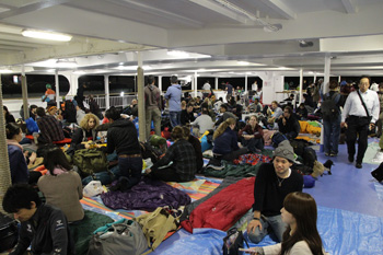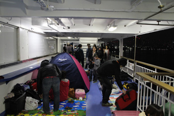 ちなみに席なし券は安いのかと言うと、そんな事もないようで、普通のキップと値段は変わらないようです。 それでも席なしの方がいろいろと気楽なのか、船の上で宴会をしたいのか、よくわかりませんが、船なし券愛好家もいるようですね(笑)