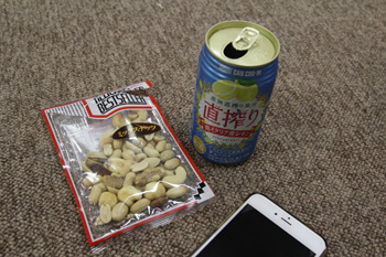 船の探検は早々にやめて、和室へもどって、お酒とつまみをチビチビやりました。