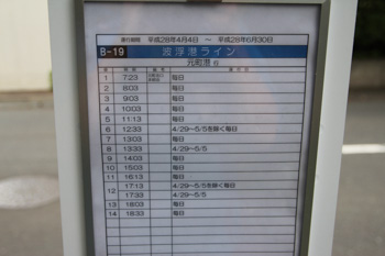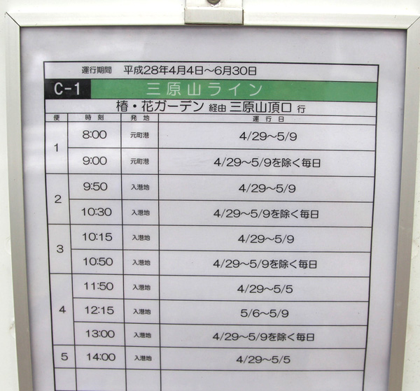 しかも、時刻表を良くみると、なんと・・・!!!出発するバス停はここじゃなくて、岡田港みたいです。