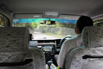 それで、バス停前で露頭に迷っていたのですが、タクシーの運転手さんが乗ってくかい?と話しかけてきました。 (商売上手ですw)もう、ほんとここで山に登らなかったら何のために伊豆大島まで来たのでわからないので、タクシーに乗りました。