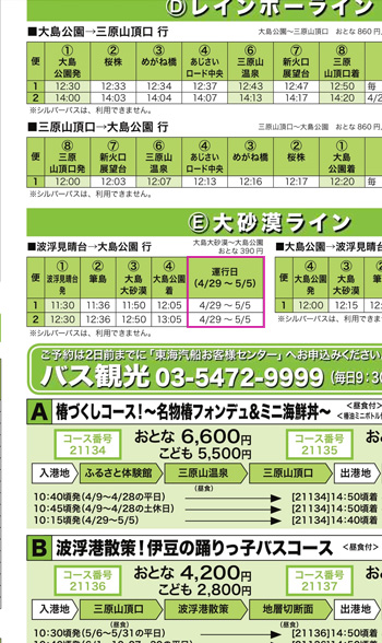 ※タクシーの運転手さんに聞いた情報ですが、岡田港に到着してそのまま三原山登山口へ行くには、4人でタクシーに乗れば、バスよりも料金が安くなり、到着も速いそうです。元町港からは、バスの方が若干安くなる程度。との事です。と、言うものの、大島バスは三原山フリーキップ(1500円)や、伊豆大島フリーパスなども販売しているので、良く調べて上手に利用してください。