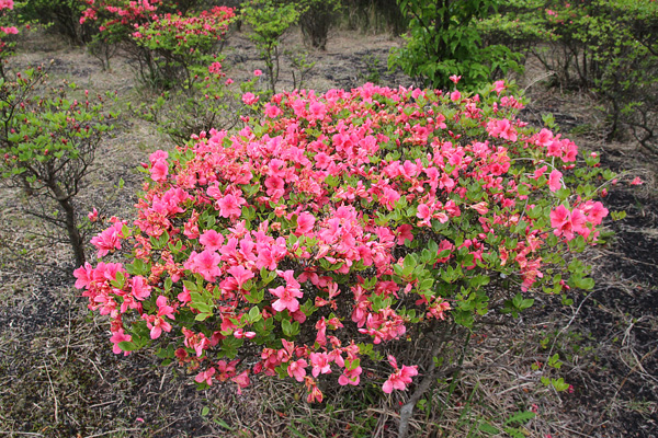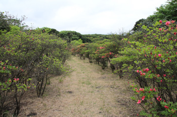 両脇につつじがあり道が伸びています。