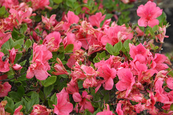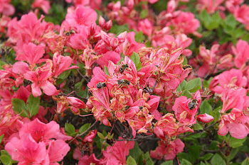 そして、ひとつのつつじの木に何十匹もミツバチが停まっていました。