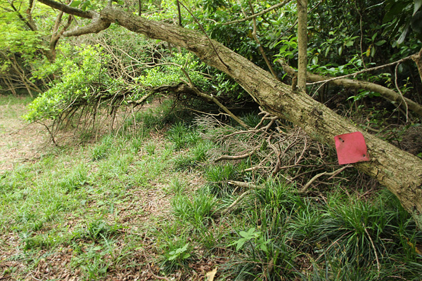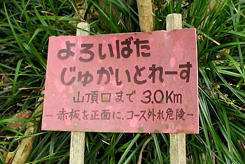 近くにまた別の赤板があって、その先に樹海の方へ伸びて行く道がはっきりと伸びていました。 これが『よろいばた じゅかいとれーす』なんでしょうね。ガイドブックには掲載されてない、秘密のトレッキングルートみたいですね。