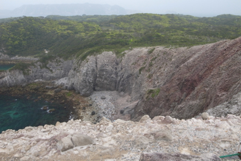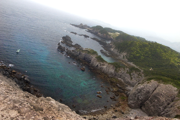 今日は残念ながら天気が曇りぎみなので展望が良く無いのですが、 天気が良い日だと富士山や伊豆諸島の島々を見る事が出来るそうで、新東京百景に選定された式根島一の名勝地です。上の写真を見てもらえると湾が3つに別れているのですが、手前から神引、中の浦、大浦(キャンプ場が有る場所です)という入江の名前になっています。