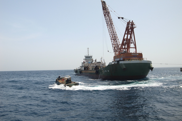 ※後で調べるとこの船は大阪の会社の船で、海の埋立てなどの作業をする船みたいです。