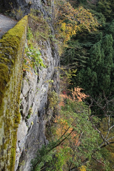 道の左側の壁から、水が滴る。