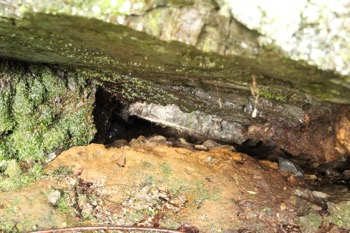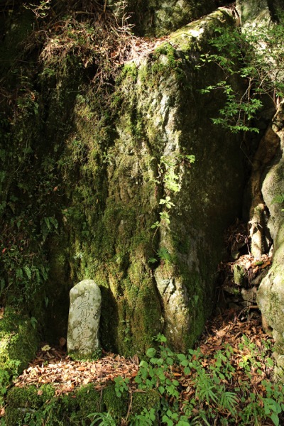 この岩の下には細い隙間が(奥がきになる)