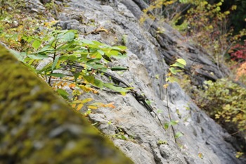崖はこんな感じ、こんな場所でクライミングする人がいるんですね。