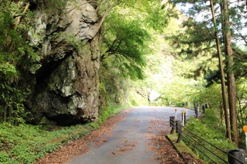 今度は左に巨岩。