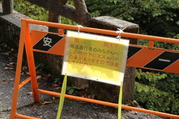 『橋の下にスズメバチの巣があるので注意してください』