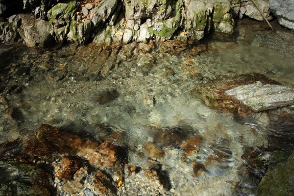 対岸へ渡ったら、水場へ近づいて清流を見る。