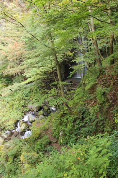 細い道が終わると、階段が出てきて、そうするとすぐそこが『百尋ノ滝』です。