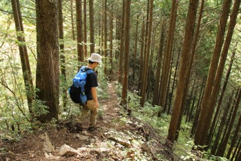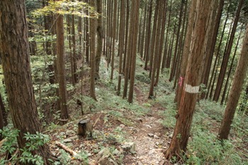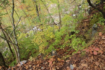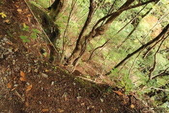 山の斜面を谷に添って登って行きます。
