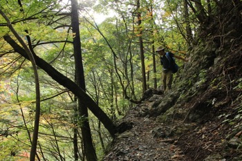 いきなり少し登って、不安定な山道にドキッとする。