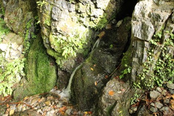 水が勢い良く出ている所から、岩の上を歩いて急斜面が始まります。