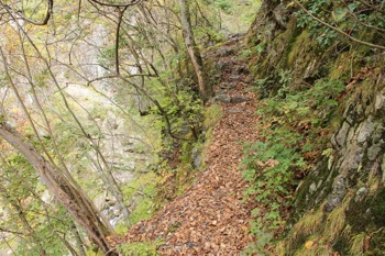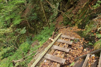 細いトラバースが終わったら階段が出てきます。