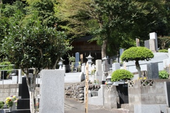 正面に墓地。