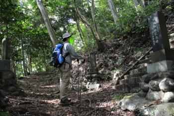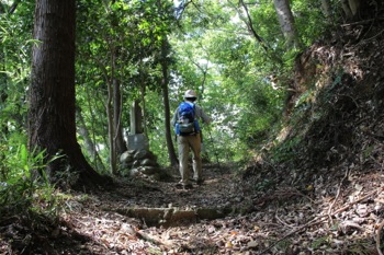 さて、何度か道を折り返して緩やかに登ってゆきますと、右手に階段がでてきました。