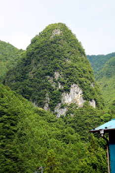 日原の集落を歩いて行くと、真正面に立派な稲村岩が見えてきました。